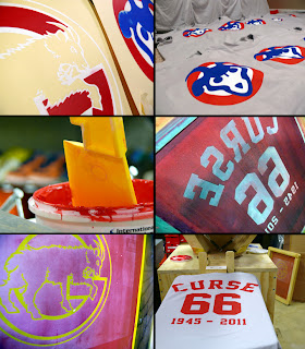 This was a production run for a label called Ducking Pigs out of Chicago. The two shirts featured 2 and 3 color logo flips of classic Chicago Cubs logos with the same graphic on the back in one color. They will be available in select streetwear stores and online in a limited run of 36 for each style. Be on the lookout!