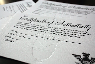 My friend Debbie recently started a letterpress business and is on the verge of greatness. We collaborated and came up with this design that I will be including with all of my custom shoes from here on out. I have had problems with China stealing my designs and mass producing them....long story. This is something that will give my customers that extra seal of approval to add along with the lacelocks. I am really happy with the turnout. Check out her blog Penelope's Press. Here's a sneak peek...
